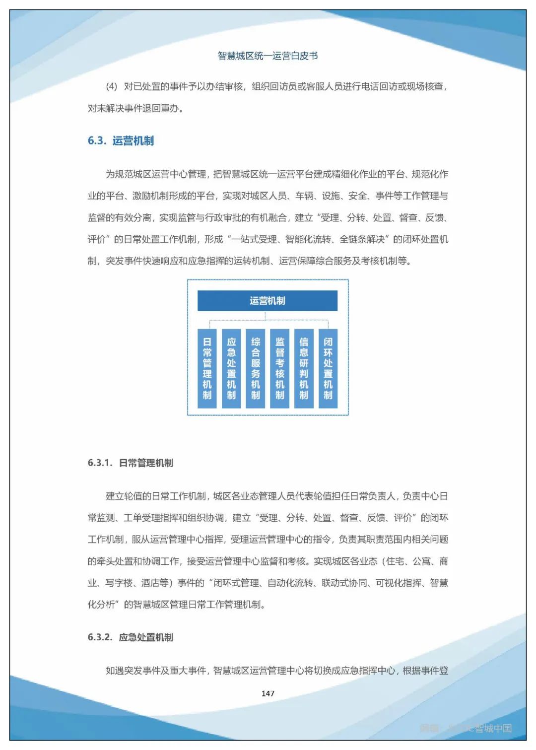 通过智慧城区统一运营白皮书的指导,城区管理者可以更好地了解智慧城区统一运营的模式,制定相应的政策和规划,推进城区的可持续发展和智慧化进程。同时,智慧城区统一运营白皮书也可以为智慧城区建设提供借鉴和参考,促进智慧城区建设的全面发展。