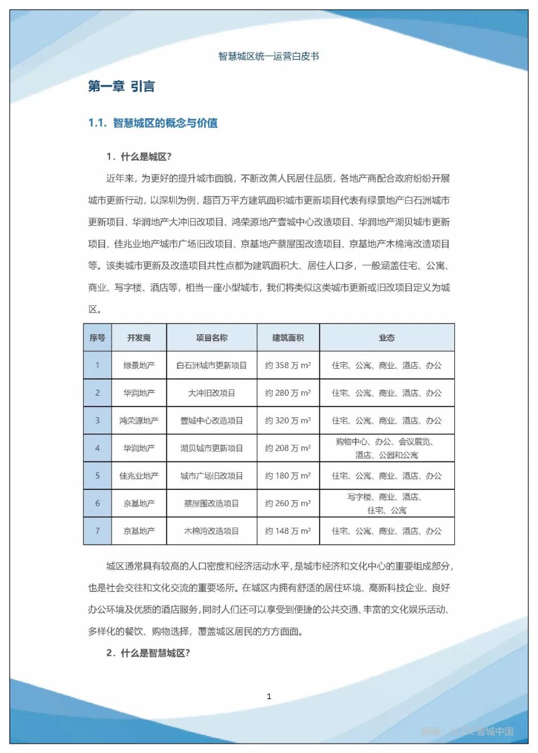 该白皮书将介绍智慧城区的概念、核心理念、关键技术,提出智慧城区统一运营的应用场景、运营方案、保障策略、各系统的建设要求及接入标准。